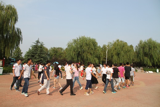 8月29日14:30,黃河岸畔的紅心廣場頓時熱鬧了起來:竹板聲聲,吉他彈唱,歌聲悠揚,舞蹈翩翩,60余名青年單身男女在這里相聚,參加公司與紅太陽幼兒園共同舉辦的“約在八月、緣定你我”大型青年聯誼會。